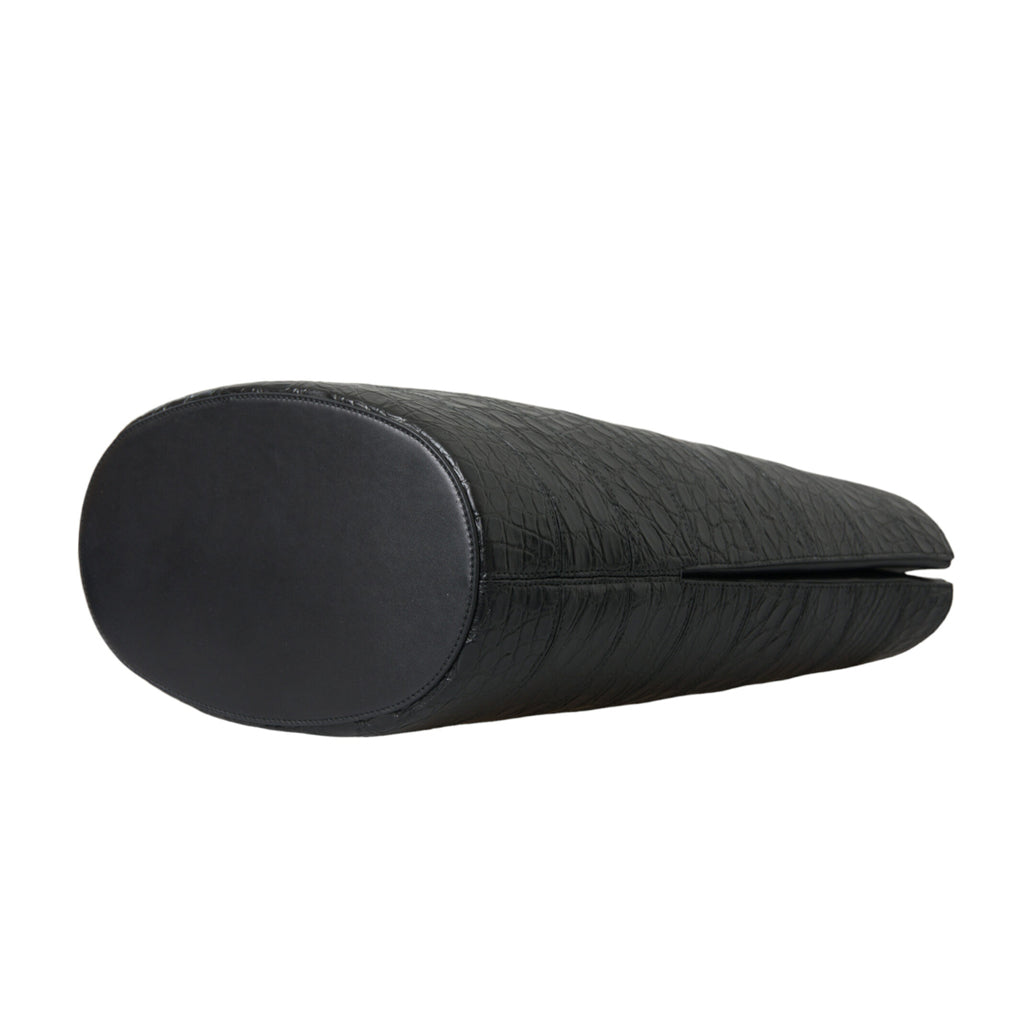 BALENCIAGA Elegant Black Crocodile Leather Maxi Bucket Bag