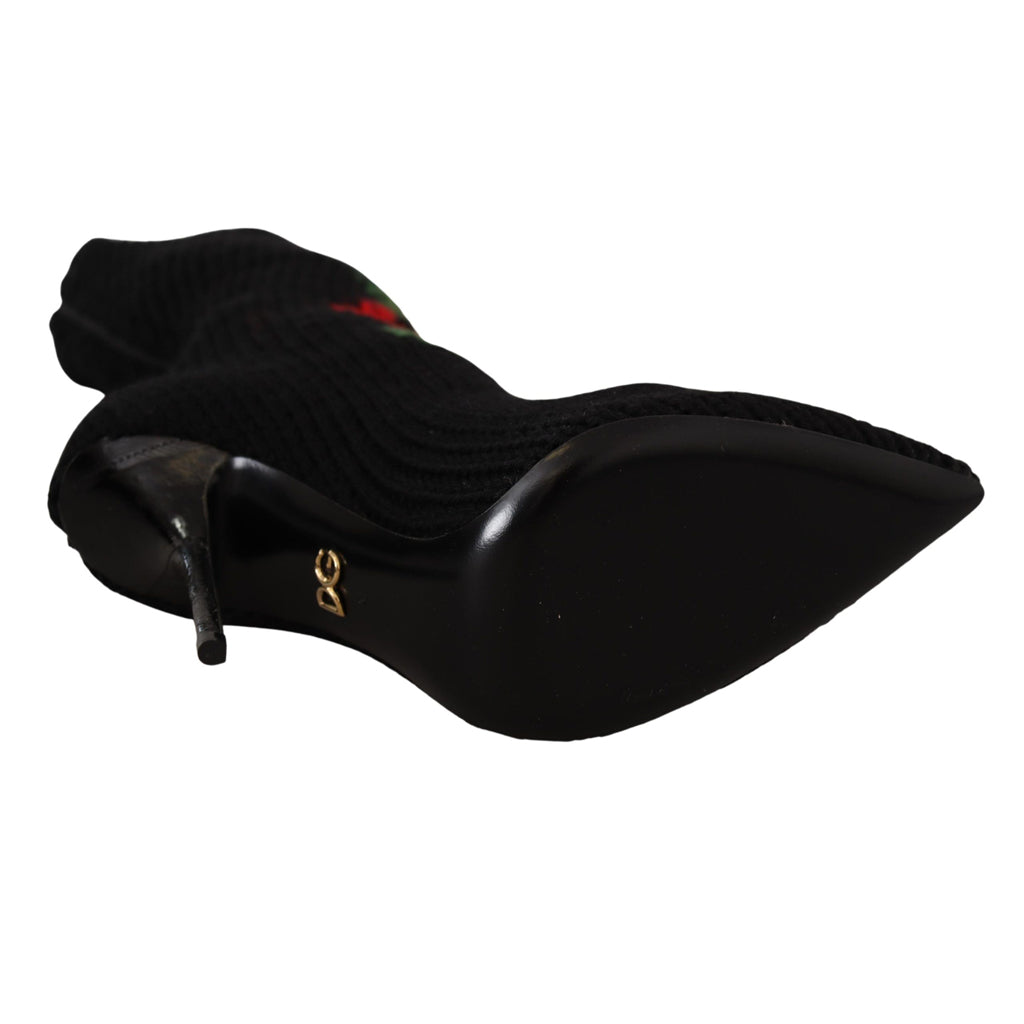 DOLCE & GABBANA Elegant Sock Boots with Red Roses Detail